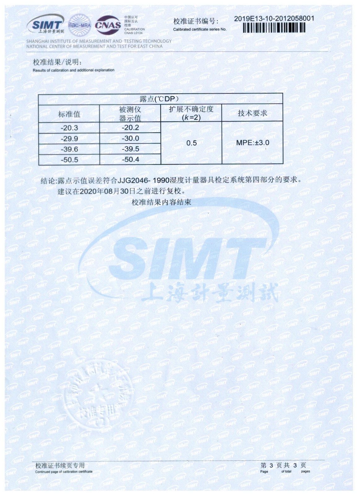 顯 示 內 容 | 露點值、PPMV(微水)、溫濕度值(環境)、露點曲線 |